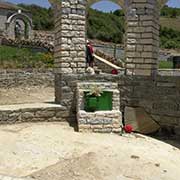 Çorovoda also has derelict factories, but the main sight is “Pirogosh”, the canyon of the Osumi river south of the town, with towering cliffs and caverns. There is also a tiny place of worship of the Bektashi branch of Islam overlooking the canyon.