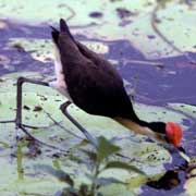 There are large flightless bird, like the cassowary and the emu; the latter emits a weird rumbling sound and is capable of running very fast. In the wetlands in the north are pelicans, brolgas, flocks of white cockatoos and the “Jesus Bird”, so called because it seems to walk on water (but really, of course, on water lily pads).