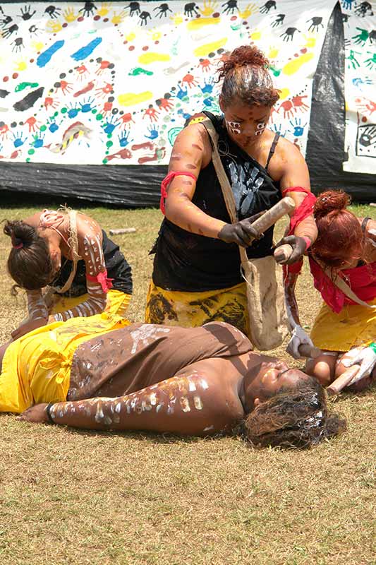 The girls of the Djarragun College Aboriginal Dance Group perform “traditional healing” as part of their act.