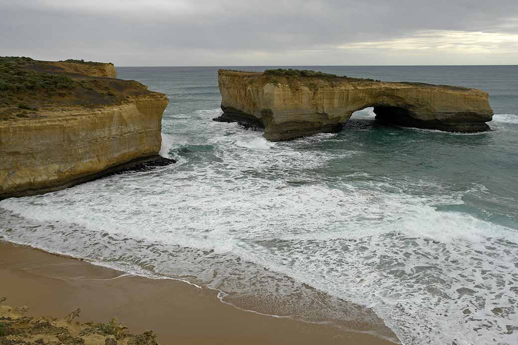 The “London Bridge”, an arch that collapsed in 1990 near Port Campbell. At the time two tourists were at the far end and had to be rescued by helicopter.