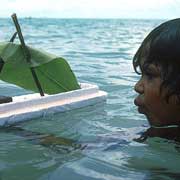 Childhood in the Torres Strait may seem like one big holiday on a beautiful tropical island; life seems carefree and safe in these small islands. The kids are self sufficient at an early age and spend their free time roaming the beach, fishing, swimming and playing. But they are taught their language, songs and dances that are still important.