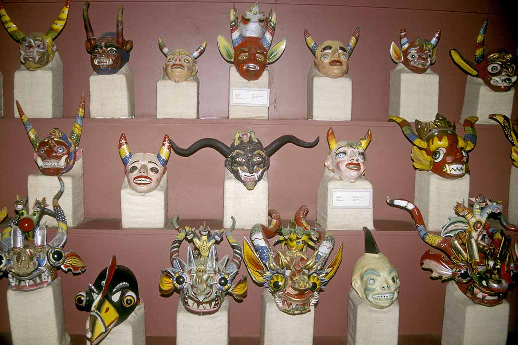A selection of “Diablada” (Devil) masks, as worn during the “devil dances” at the Carnaval de Oruro, one of the great folkloric events of South America.