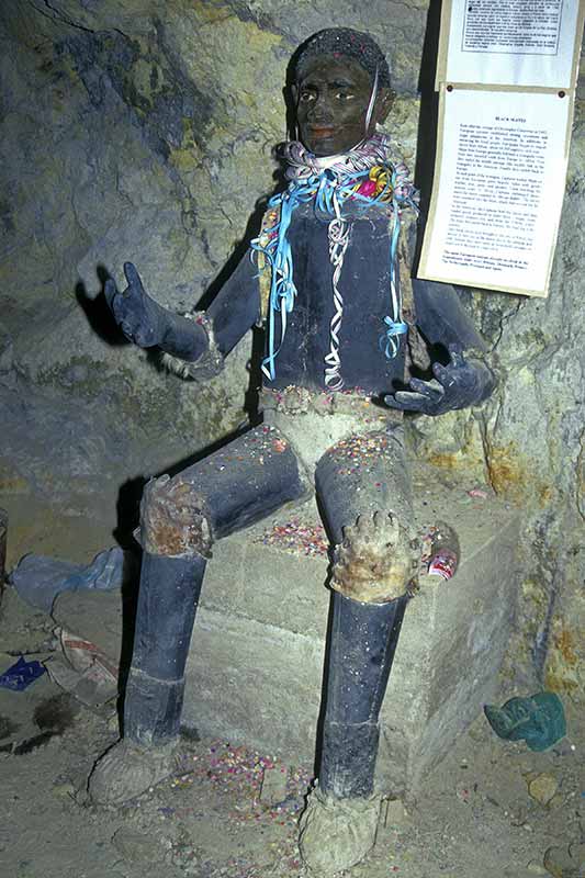 An effigy of a black slave in Cerro Rico mine. The mine was the reason for the existence of Potosí: for three centuries the Spanish forced Indigenous and African miners to work here, while Spain and Potosí grew rich from the silver.