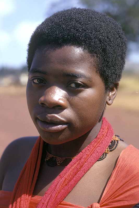 A Swazi girl wearing the red and black “umcwasho” tassel (indicating she has a boyfriend) in Lobamba, the village of the Queen Mother at the start of the uMcwasho Ceremony where girls dance after discarding their tassel.