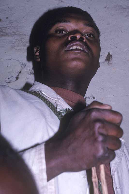 A pastor during a service lasting many hours in a “Zionist” African church, held in a small house in Msunduza, the township above Swaziland's capital Mbabane.