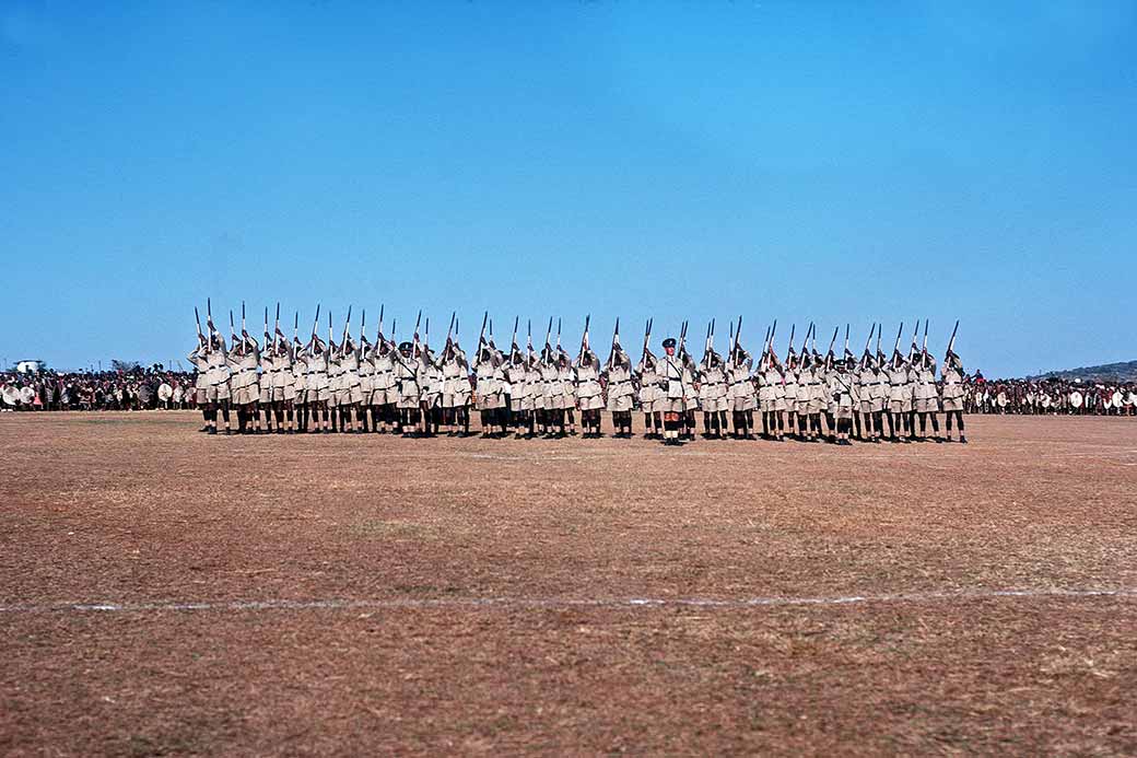 The “Feu de Joie”, in which the police Guard of Honour gives a Royal Salute by firing their weapons at the King's Birthday Celebrations in Siteki.