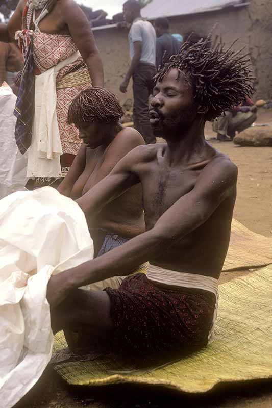 Mhlabazimile Motsa, the only male initiate, is “reborn” as a fully qualified sangoma, shaking violently.