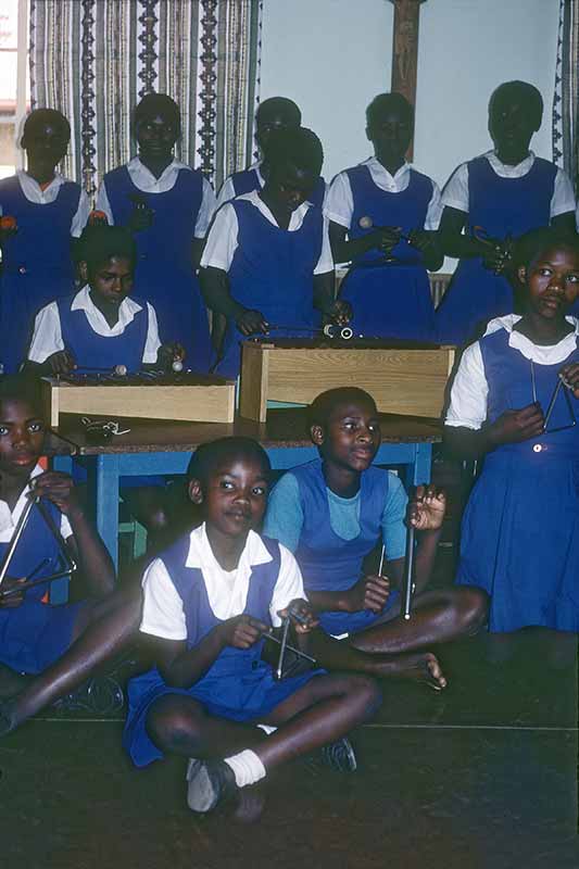 Girls at Salesian Primary School in Manzini making music in their “Orff band”, a practical approach to teaching music.